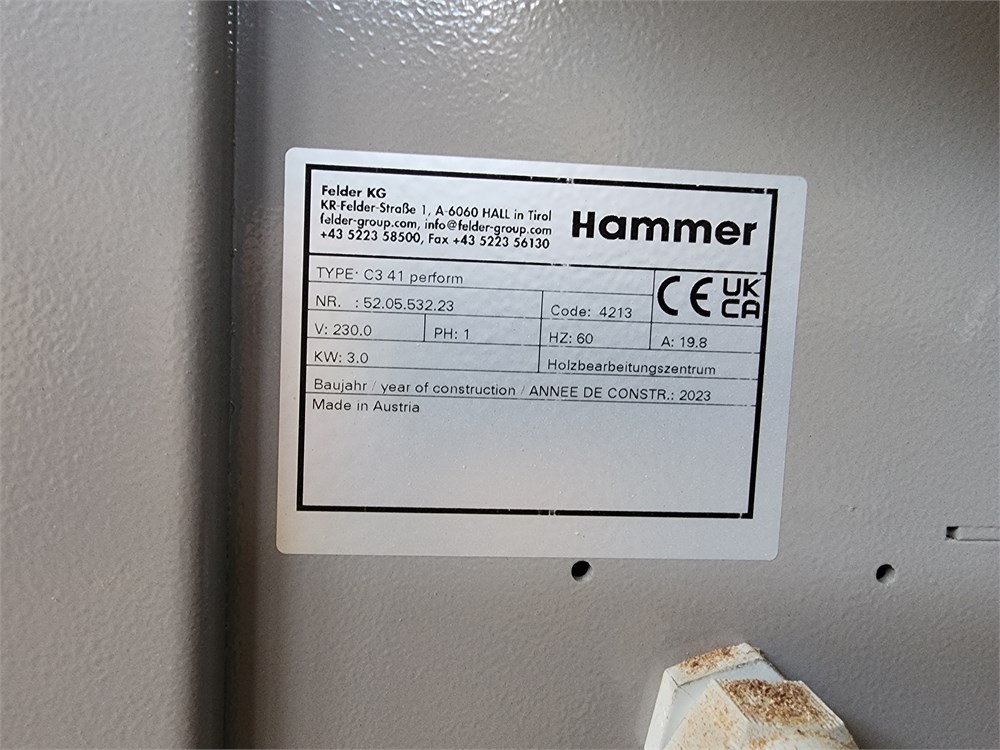 A woodworking company in the greater Tulsa, OK area is auctioning a 2023 Hammer "C3 41 Perform" Combination Machine with VERY LOW HOURS no longer required for operations. Please call me directly with an questions! This machine new is $25K!